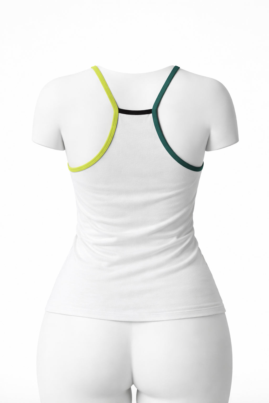 • High neckline with racerback